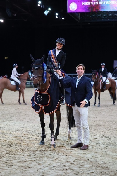 Delighted to see #bshgraduate “Nike van het singraven” and @hollysmithsj winning the 7yo championship at hoys last night after qualifying at one of our local venues chard equestrian earlier in the year .